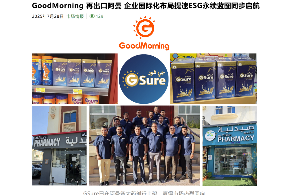 (莎阿南 28 日讯)GoodMorning集团(晨旭之美)持续拓展国际版图,今年 6 月再度出口旗下系列功能性营养产品至阿曼苏丹国,巩固中东市场布局之际,也正式启动企业环境、社会与治理(ESG)议程,全面对标联合国17项可持续发展目标(SDGs),展现兼顾科技、健康与社会责任的全球发展新蓝图。