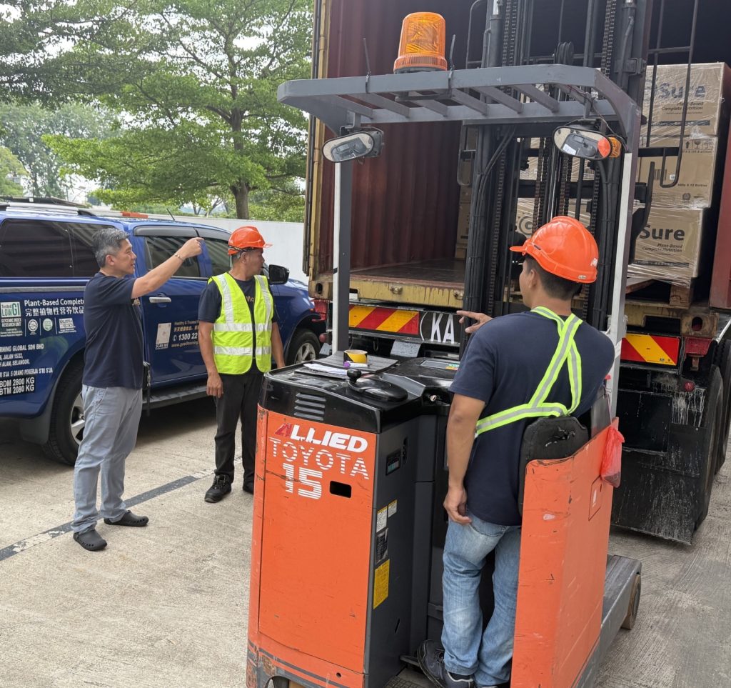 第三批出口至阿曼的产品于6月装柜,左为集团总营运长方耀宗。