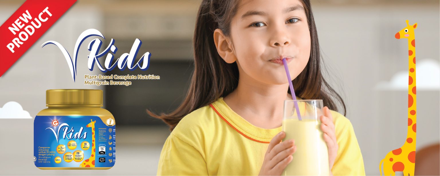 VKids is a plant-based and balanced nutrition beverage, suitable for kids aged 3 and above.